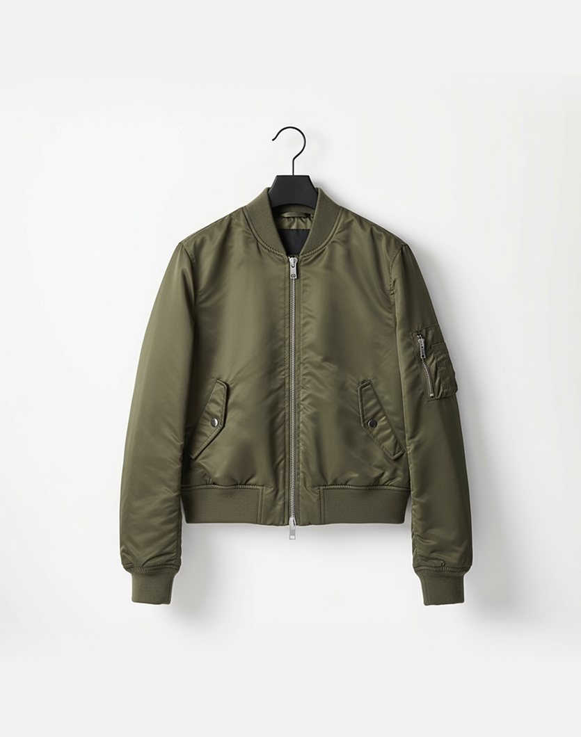 Casualowa bomberka w kolorze khaki. Modny krój i wytrzymały materiał sprawiają, że to idealna propozycja na wiosnę, jesień i chłodniejsze letnie wieczory.